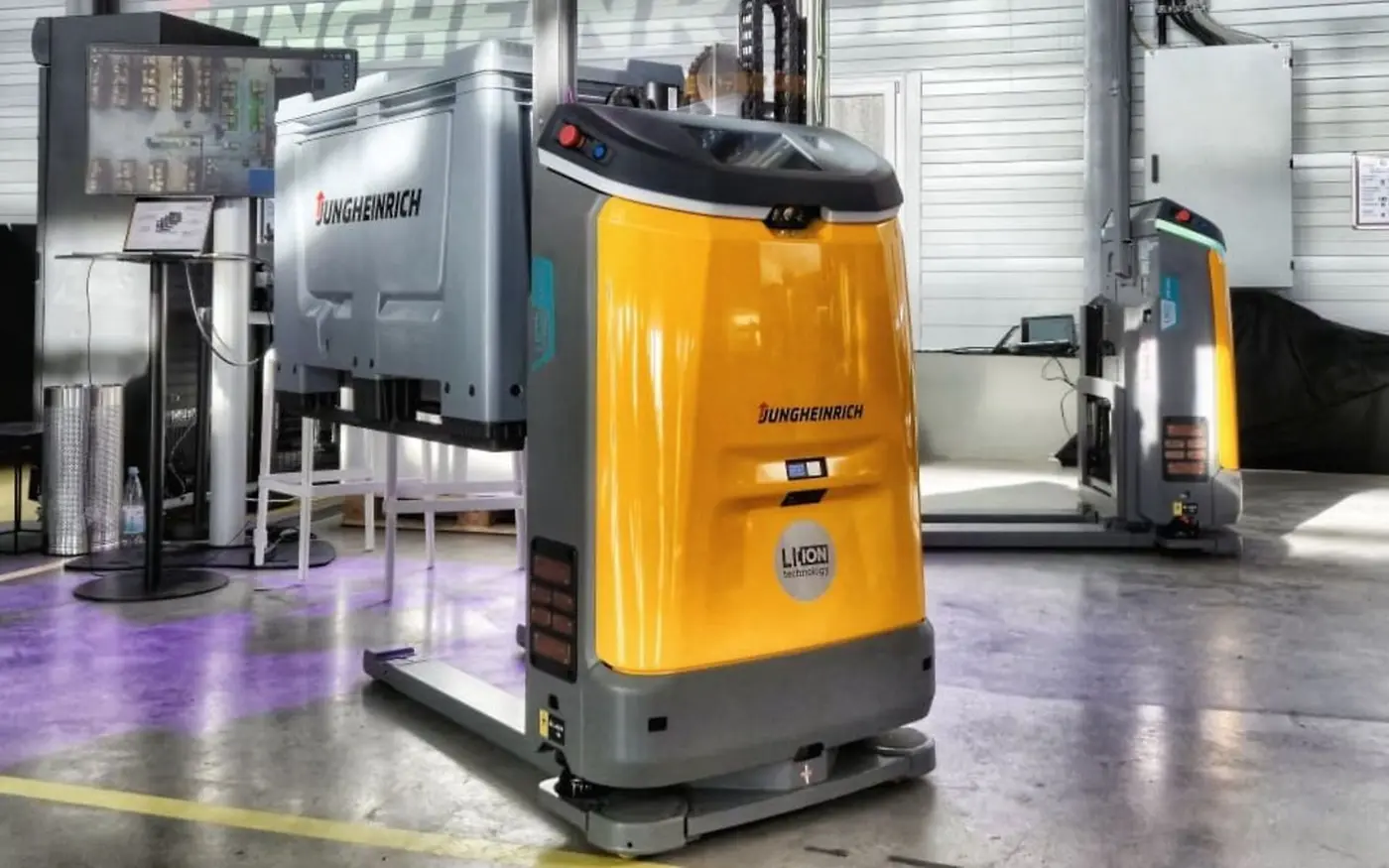 Dal punto di vista propulsivo, il robot mobile è dotato di una batteria agli ioni di litio da 130 Ah completamente integrata e adotta un concetto di ricarica intermedia automatica, per cui può essere istruito tramite un sistema di controllo centrale a raggiungere autonomamente la stazione di ricarica durante le pause operative e riprendere le attività di trasporto dopo un breve periodo di ricarica, per ridurre al minimo l’intervento manuale, aumenta l’efficienza operativa e migliora la pianificazione delle operazioni della flotta.